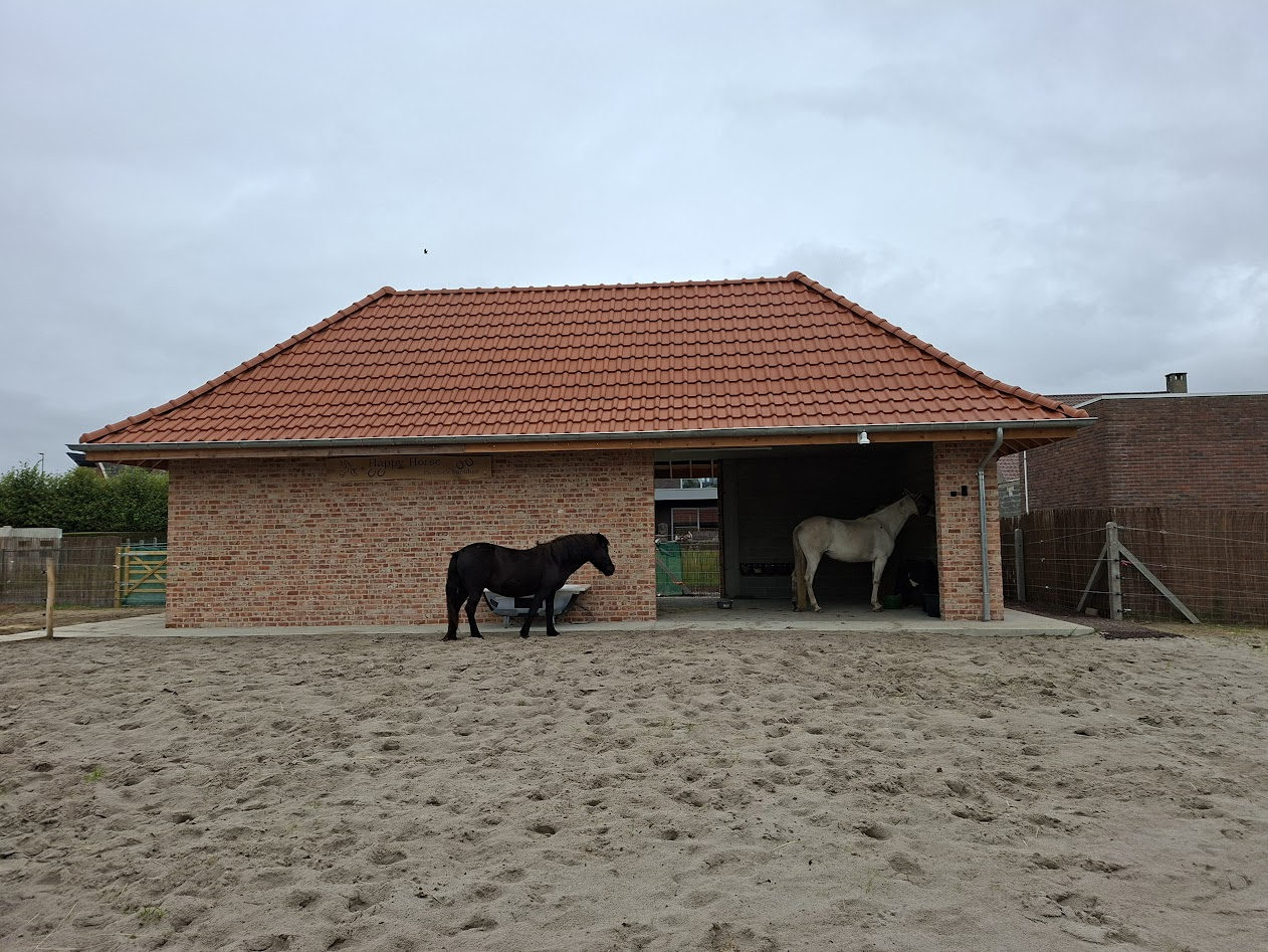 Je ziet: soms is het moeilijk om te voorspellen hoe de paarden reageren op de indeling. Het is dan een afweging maken tussen eerst een jaar aankijken om dan keuzes te maken, of net bij de start inrichten om bodemverdichting te voorkomen. In dit geval is er voor het laatste gekozen, maar dat wilt niet zeggen dat de investering verloren is. Ik verwacht dat eens het huis af is de paarden vanzelf dichterbij zullen rondhangen. Daarnaast kan je ook met kleinere investeringen (bvb. voerplaatsen verstevigen) de modder toch voor een groot deel voorkomen of omzeilen!